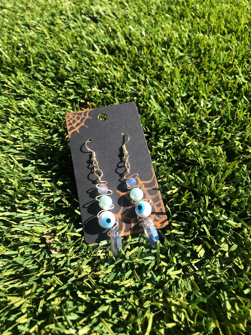 These airy blue & purple evil eye earrings are filled with abundant intention & good vibes okaay, yes! Made with love, crystals, beads & wire. 🧿